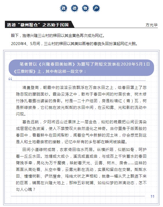 【旌德歷史】旌德“徽州糧倉”之名始于民國