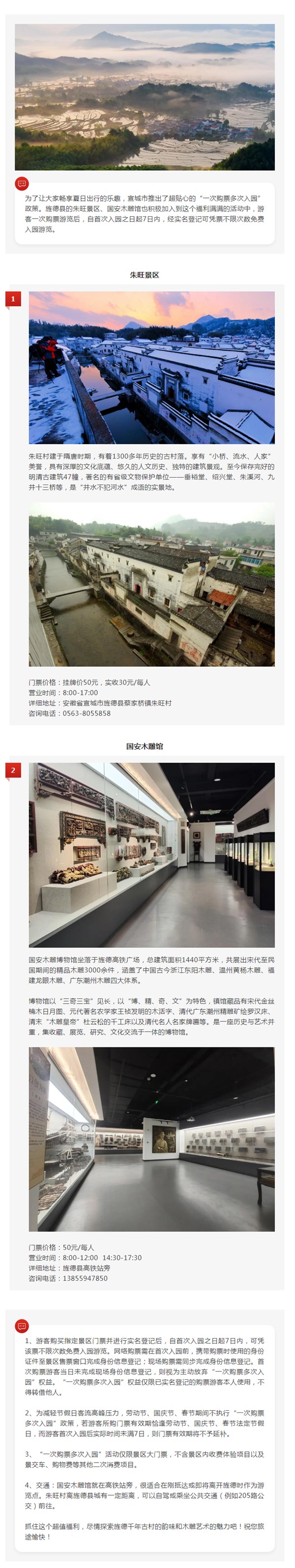旌德縣朱旺景區、國安木雕館“一次購票多次入園”