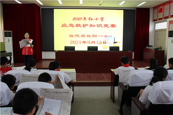 為進一步普及應急救護知識, 9月13日下午,旌陽一小組織高年級學生開展了應急救護知識競賽活動。