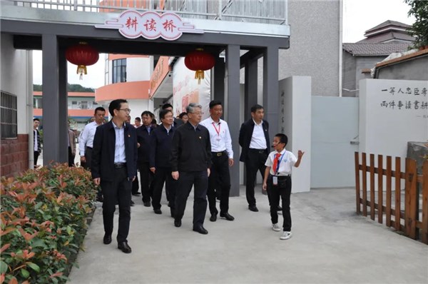 對學校“讀、看、講、寫、畫、唱、尋、祭、踐”9種教育方式表示贊賞,在8個學習場所和黨史學習教育暨“耕讀文化”展示牌前,駐足觀看。欣賞師生們磨豆腐、田間耕作等勞動展示,在品嘗師生們自己生產的勞動成果后給予點贊。