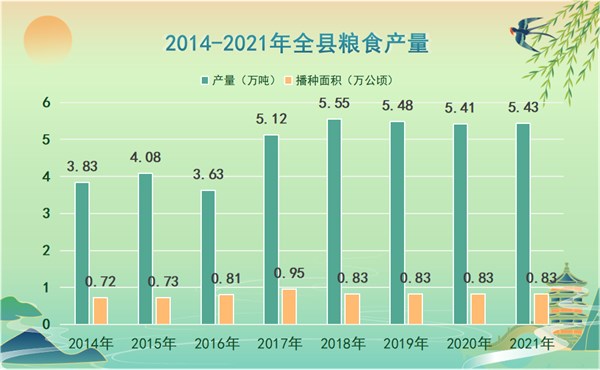 2014—2021年全縣糧食產量