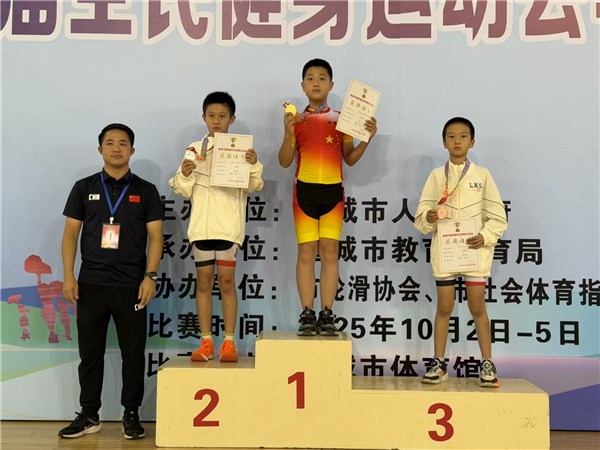 在競爭最為激烈的速度輪滑項目中,我縣9歲的小將黃育虹面對經(jīng)驗豐富的對手毫不怯場,沉著冷靜地發(fā)揮出自身強大的爆發(fā)力與耐力,在全場一片喝彩聲中第一個沖向終點獲得冠軍。最終我縣代表隊共斬獲5項冠軍、2項亞軍和5項季軍,獎牌榜金牌總數(shù)位列第一名。