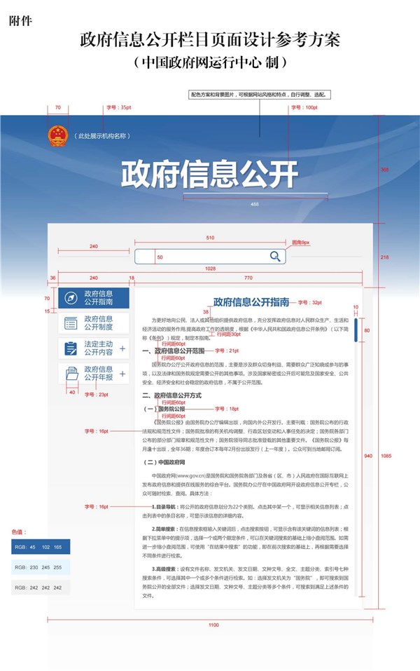 中國政府網運行中心根據(jù)上述要求設計了“政府信息公開欄目頁面設計參考方案”,供參考使用。