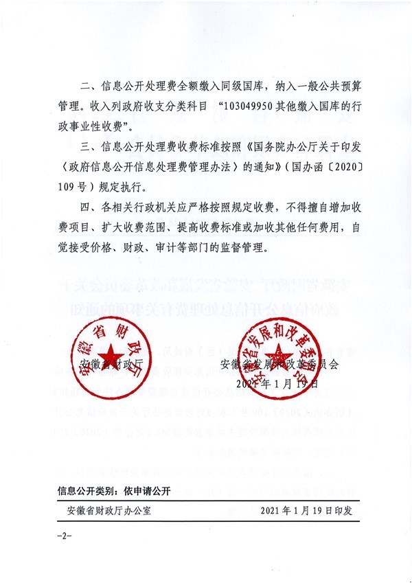 安徽省財政廳安徽省發展和改革委員會關于政府信息公開信息處理費有關事項的通知